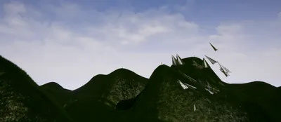 Over the last year of my degree, I built a game as part of my final year project. It’s a single-player game based around finding goals in a landscape, using swarm intelligence and simulation. The player pilots a small flock of paper aeroplanes (which are controlled using the boids algorithm) towards small goals on the top of hills, with the aim of capturing as many as possoble before the time runs out.
